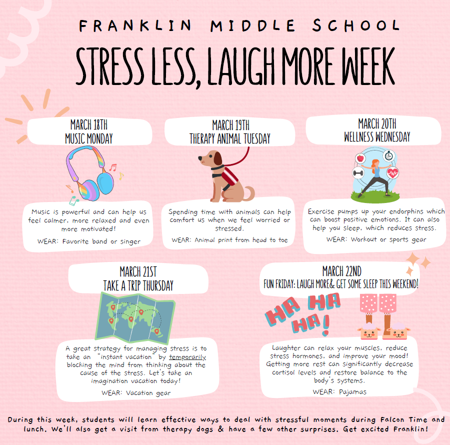 As you know, stress is a normal response to life’s changes, pressures, and challenges. ​It’s a mind-body signal that helps you get ready for what’s ahead. Each day this week, we ​will learn a different coping strategy to deal with stressful moments.